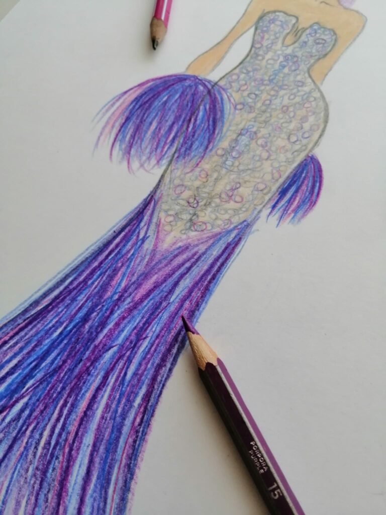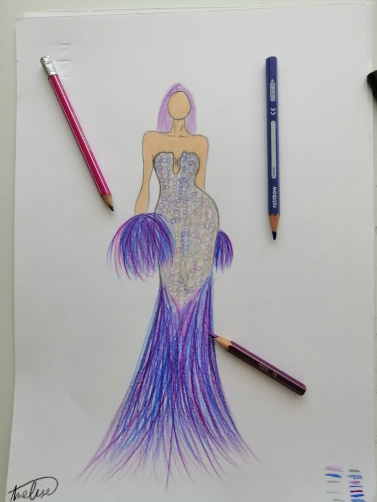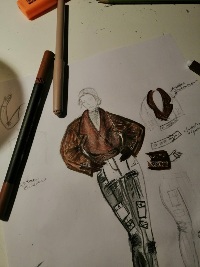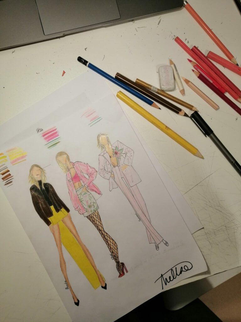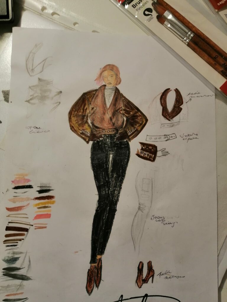 Adoro disegnare, ho tanta fantasia e la mia passione è la moda. Amo disegnare e a volte prendo spunto dai social, altre mi faccio guidare dalla mia fantasia. Mi piace anche fare gioielli, anche quelli, prendendo spunto dalle nuove tendenze di moda. Ultimamente, però, ho messo da parte i gioielli e ho ripreso a disegnare la moda.